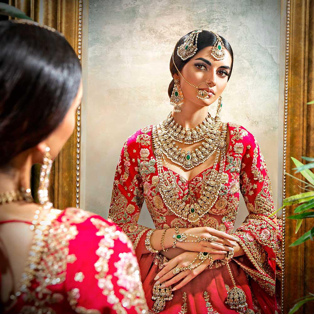 Rooted in timeless tradition, the Almeera Collection gracefully merges classic charm with refined elegance, striking a harmonious balance between intricate metalwork and radiant crystal accents—perfectly complementing any bridal ensemble.